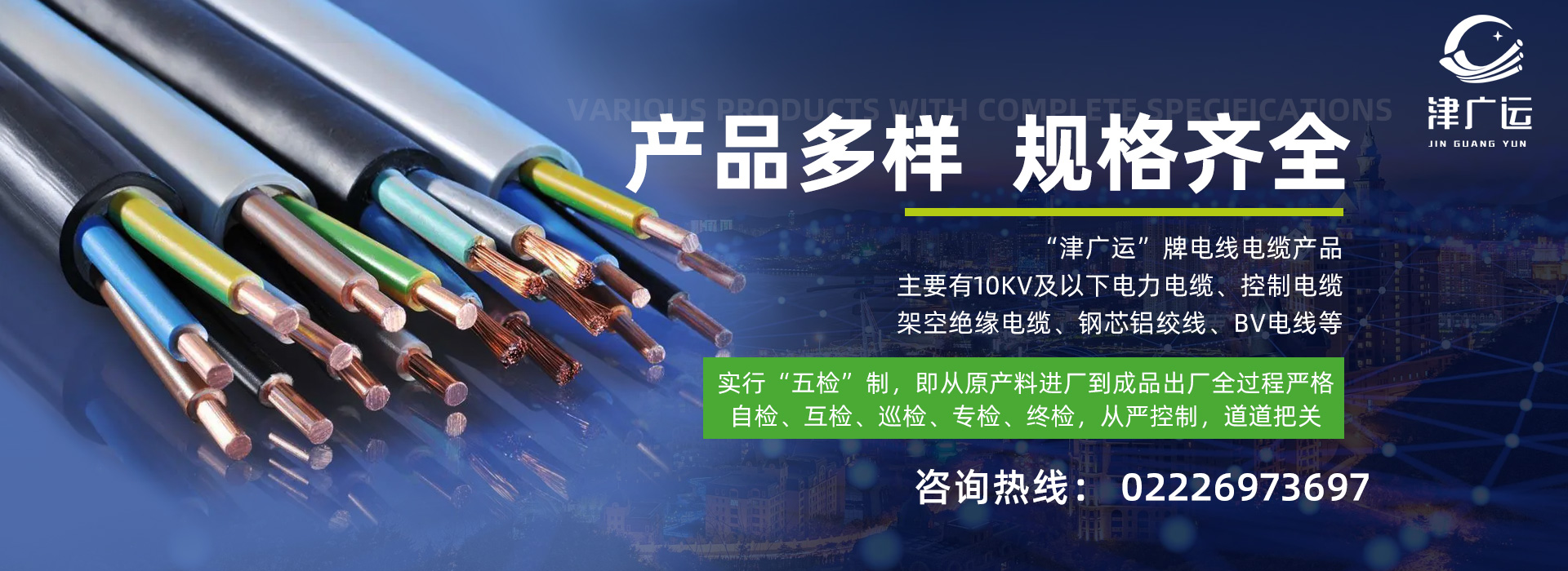 “津廣運(yùn)”牌電線電纜產(chǎn)品,主要有10kv及以下電力電纜、控制電纜、架空絕緣電纜、鋼芯鋁絞線、bv電線等。我們可以根據(jù)用戶需求,嚴(yán)…